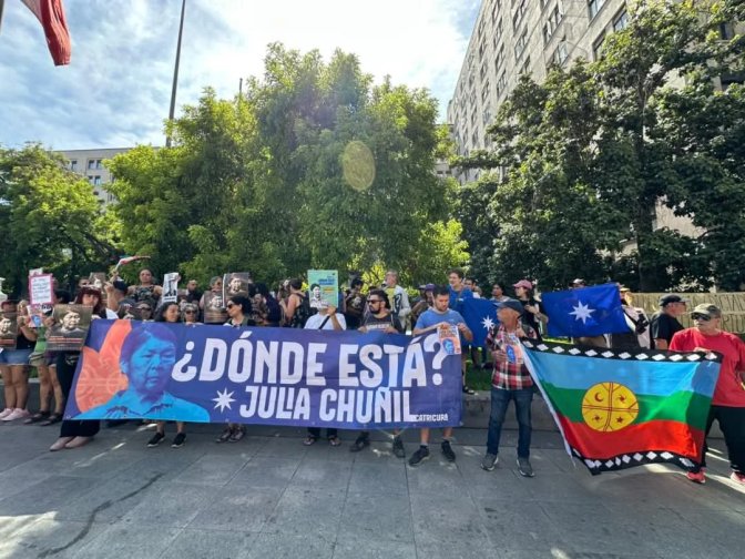 Le vendredi 8 novembre 2024, la dirigeante mapuche Julia Chuñil Catricura a disparu ainsi que son chien Cholito. Quatre mois plus tard, il n’y a pas d’avancées et ses proches n’ont pas pu non plus avoir accès au dossier d’enquête.